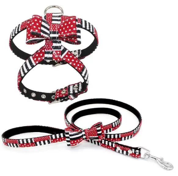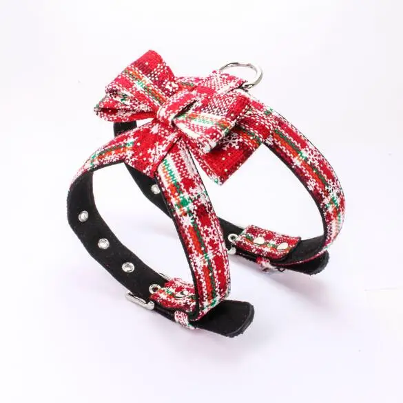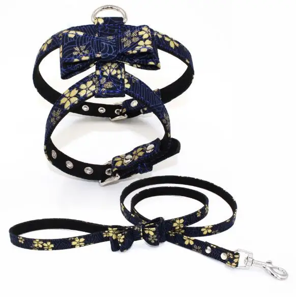 Christmas Japanese Floral Fabric Bow Tie Adjustabl Cat Dog Strap Harness And Leash